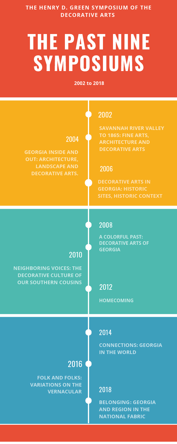 On January 25 – 26, 2002, the inaugural Henry D. Green Symposium of the Decorative Arts “The Savannah River Valley to 1865: Fine Arts, Architecture and Decorative Arts” brimmed with more than 400 participants at the Georgia Museum of Art. Since that weekend almost 18 years ago, the Green Symposium has blossomed into one of the largest events dedicated to material culture, and its reach has spanned thousands of attendees.