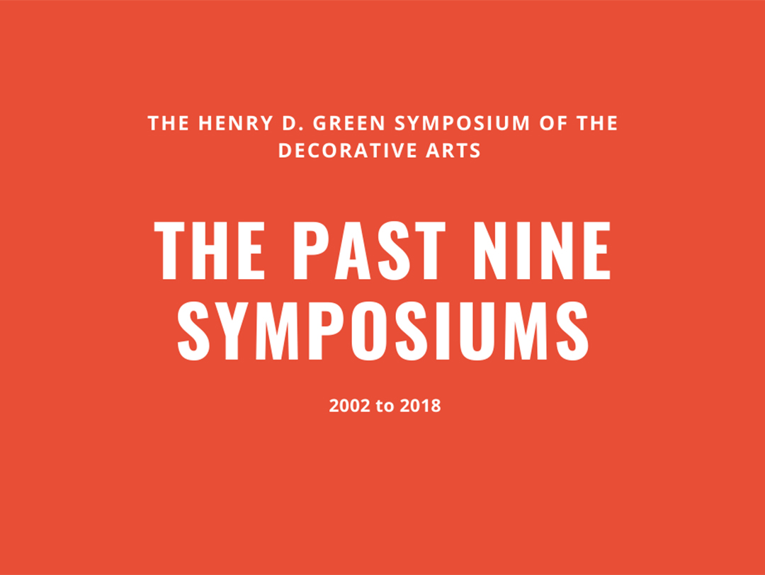 This year marks the 10th symposium (held every other year) and the 20th anniversary of the Henry D. Green Center for the Study of Decorative Arts. These two overlapping anniversaries are not only a time to reflect on the perseverance of the two programs, but a time to highlight the progressive volumes of scholarship and groundbreaking exhibitions amassed since their conception.