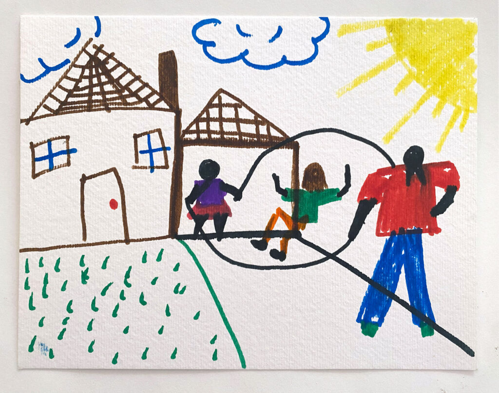 Now it is your turn to draw a special scene from your everyday life or kids playing your favorite game.