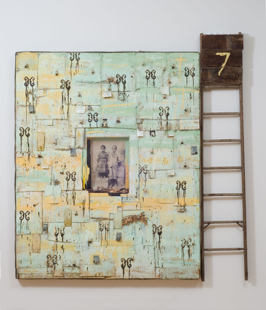 Mixed-media art is made by using more than one material in a single work of art. Bailey was a contemporary artist known for his mixed-media works of art that explore African American history. He often created art from found materials that had historical and personal importance to him, such as traditional African sculpture and tintype photographs of his ancestors.