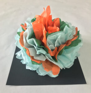 - Choose 8 to 12 pieces of tissue paper. They can be a mix of colors or all the same. What inspires you? The more pieces of paper you choose the larger your final sculpture will be.