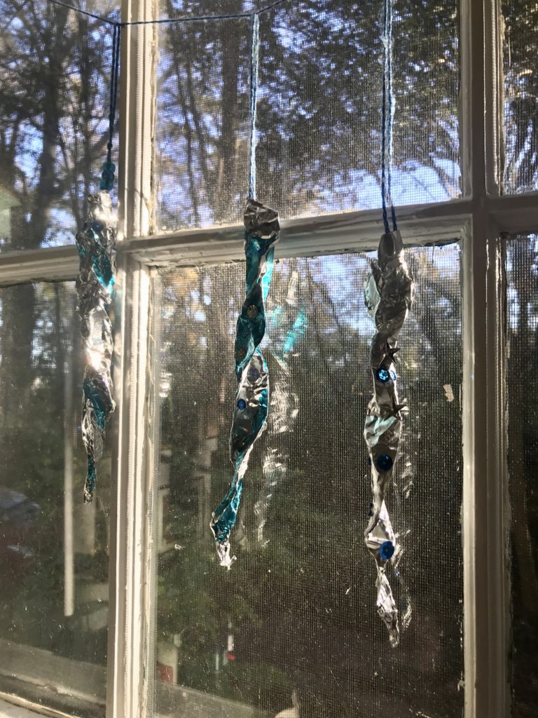 En esta actividad, utilizará objetos ordinarios para crear los atrapasoles de carámbano centelleantes para decorar sus ventanas.