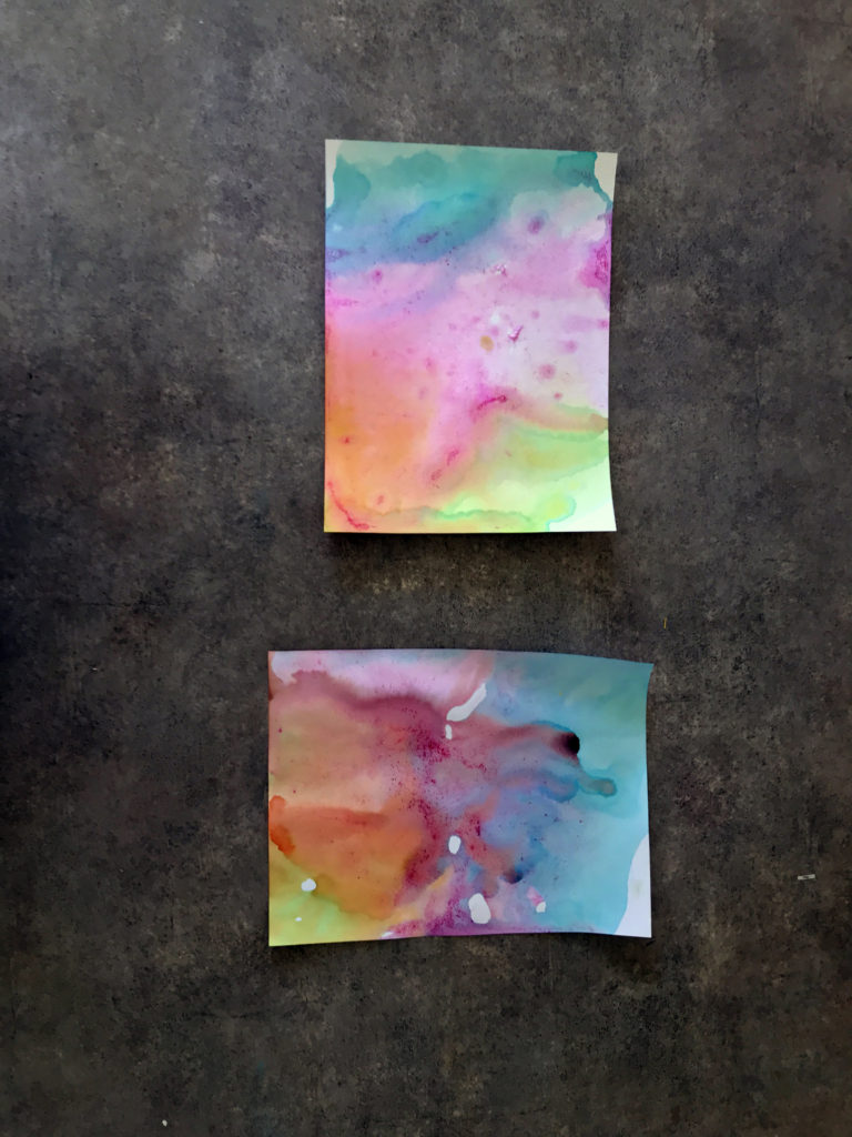 - Tan pronto como sea posible, coloque usted suavemente un pedazo de papel en la superficie burbujeante. ¡Levántelo y déle la vuelta para ver el grabado de su “mindscape”!