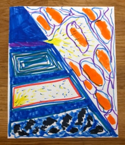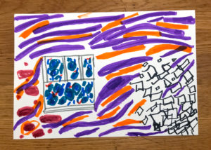 - Begin drawing the sounds. What colors do the sounds make you think of? Are the sounds you hear smooth and flowing, or short and choppy? Are they loud or soft? Think about what kind of lines, shapes and colors you can use to reflect the flow or feel of the sounds you hear.