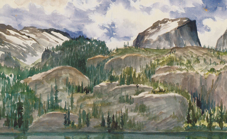 “Bear Lake Cliffs, Colorado,” 1960-1980. Watercolor. 17 1/8 × 23 15/16 inches. Georgia Museum of Art, University of Georgia; gift of Dr. Eugene Odum. GMOA 1997.31