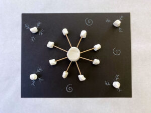 Now it’s your turn to make a snowy work of art. Let’s make a marshmallow snowflake.