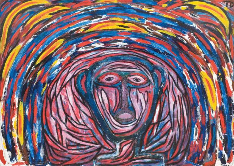 This painting, “The Spirit of Grand Central Station – The Man Who Helped the Handicapped,” is by the artist Thornton Dial Sr. Grand Central Station is a big train station in New York City that many people use. Dial was inspired by the sights and sounds that he heard and saw there. What colors do you see? Dial imagined these colors when he heard different sounds. Do you think he heard loud or quiet sounds at the train station?