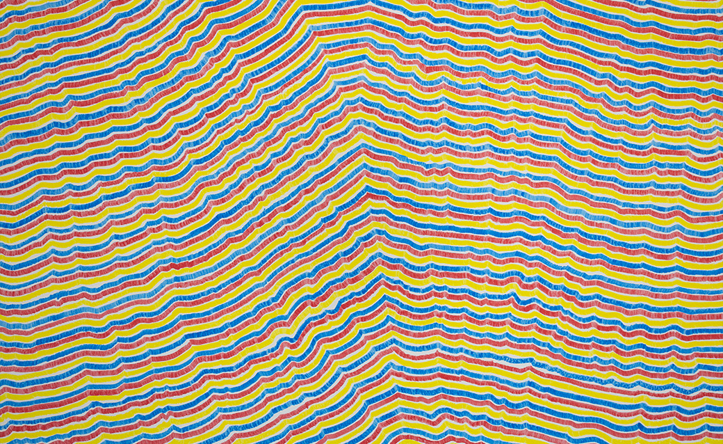 The artist Sol LeWitt wrote the directions to create this wall drawing. It was made by many people who used red, yellow and blue markers to draw long lines. They followed the artist’s instructions to create it at the Georgia Museum of Art.