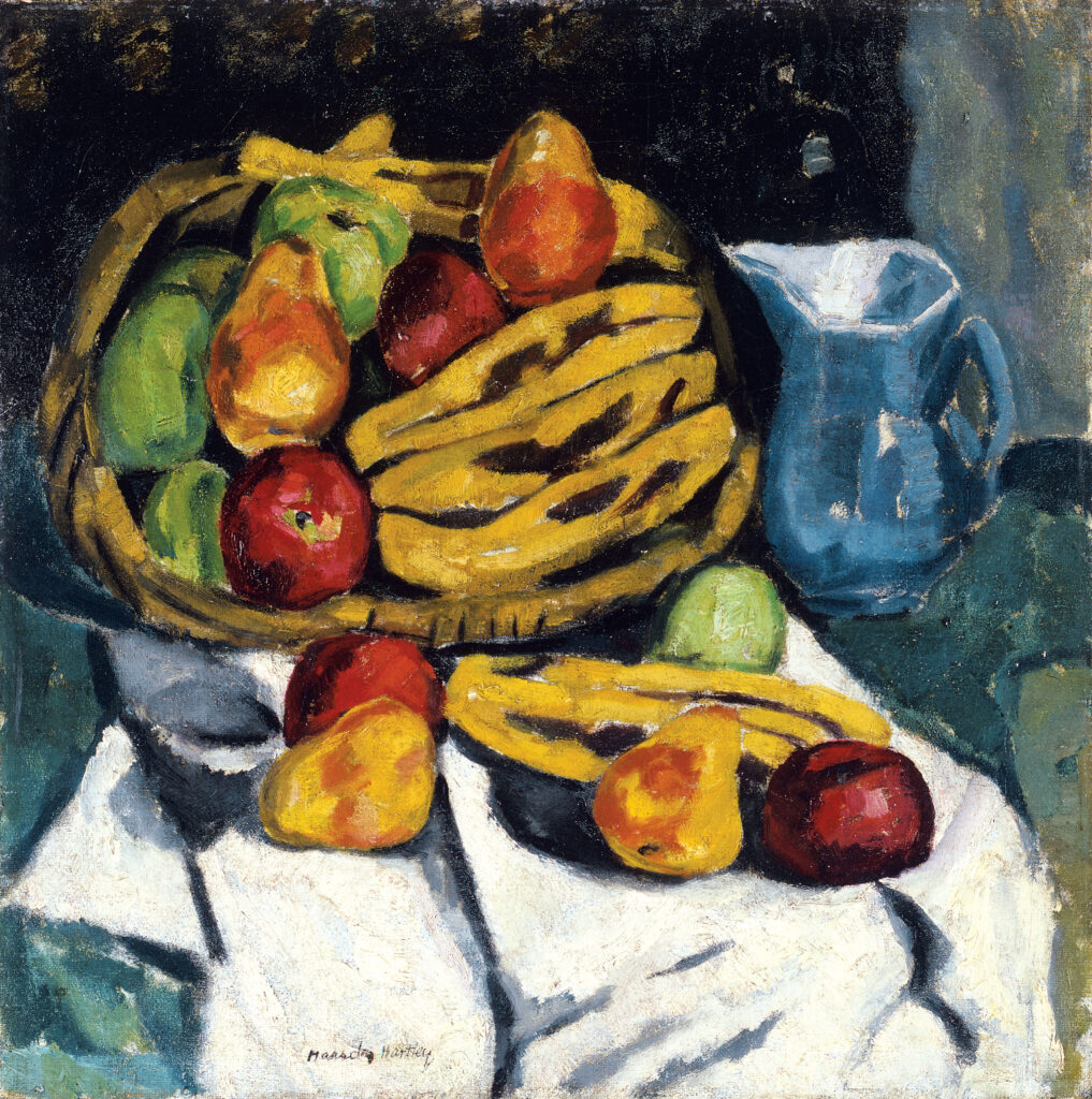 Marsden Hartley (American, 1877 – 1943), “Fruit Still Life,” ca. 1911 – 12. Oil on canvas, 20 1/8 × 20 1/8 inches. Georgia Museum of Art, University of Georgia; Eva Underhill Holbrook Memorial Collection of American Art, Gift of Alfred H. Holbrook. GMOA 1945.46.