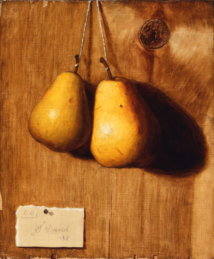 De Scott Evans (American, 1847 – 1898). “Still Life with Pears,” 1888. Oil on canvas with original painted wood frame, 12 × 10 inches. Georgia Museum of Art, University of Georgia; University purchase on the occasion of the museum’s Fiftieth Anniversary. GMOA 1999.5.