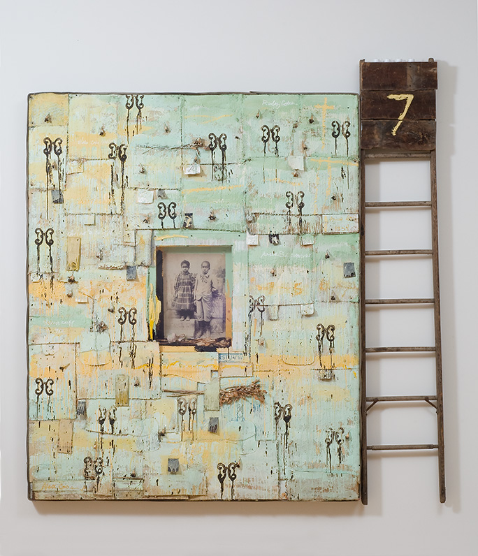 This artist’s name is Radcliffe Bailey. He liked to use old family photographs in his artwork. He wanted his art to focus on love for his family and where he comes from.