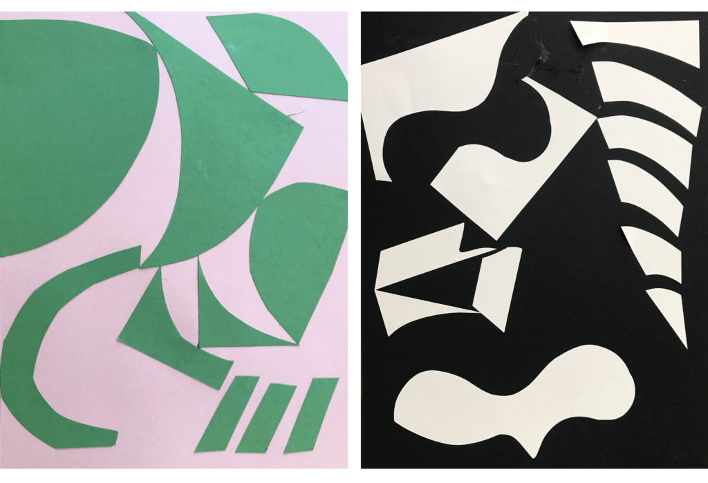 - Cut your second color into interesting shapes. Try cutting the same shape in different sizes or cutting new shapes no one has ever seen before.