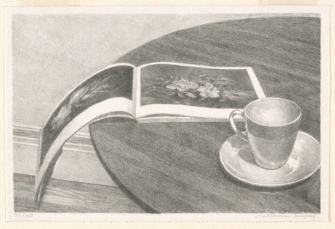 Catherine Murphy (American, b. 1946), “Still Life With Reproductions,” 1974. Lithograph, 7 1/4 × 11 1/4 inches. Georgia Museum of Art, University of Georgia; Gift of Donald Droll. GMOA 1974.3264.