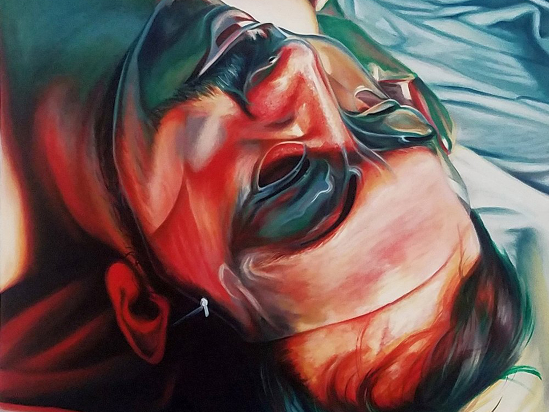 These stories result in out-of-the-box visualizations often bursting with color. To translate them into visual art, Niswonger transforms them from staged photographs to large paintings. They encapsulate the story or topic without giving preference to any side of a particular debate. Niswonger is more interested in the oddity of the story or discussion than in promoting a particular opinion about it.