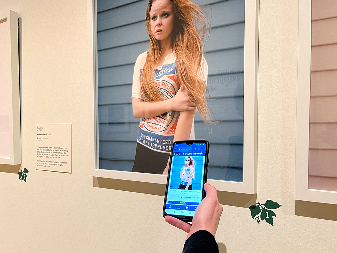 Visitors can listen to the audio tour here(opens in new tab) or in the exhibition at the museum, where they can scan a QR code to access it. Numbered stops are labeled throughout the galleries. The audio will play from your phone’s loudspeaker, so please use headphones if possible out of consideration to other visitors. A transcript of each recording is provided within the web app, which does not require you to download anything to experience the tour.
