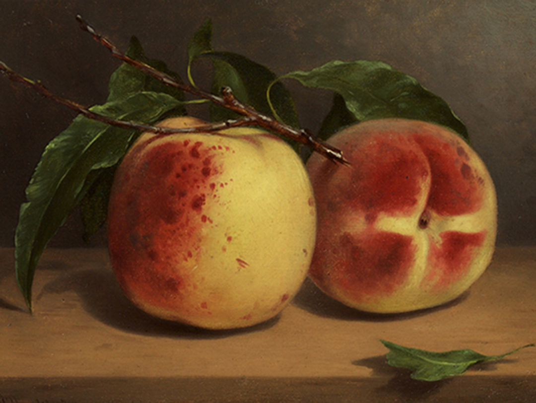 The son of a British landscape painter, William Rickarby Miller immigrated to the United States in 1844, eventually settling in New York City. Miller gained recognition through watercolors of the Hudson River Valley, which he sold through the American Art-Union and exhibited at the National Academy of Design, and later through work as an illustrator for weekly magazines like Gleason’s and Frank Leslie’s. Throughout his career Miller also painted myriad studies of fruit in nature — especially peaches — inspired by the plant life he saw on his many sketching trips.