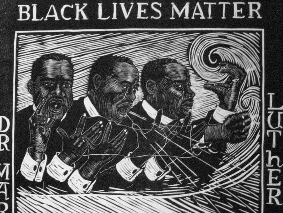 Several years ago, the artist and activist Art Hazelwood introduced me to the work of Ronnie Goodman. He showed me Goodman’s linocuts with subjects ranging from the plight of the homeless through his personal experience of prison. In images of jazz and its masters, music became for Goodman a symbol of escape. Documents of prison life, indeed, but these works were also technically strong and graphically striking. With acquisition funds available from the Byrnece Purcell Knox Swanson Acquisitions Fund, I was able to acquire 13 of these extraordinary and topical prints on the spot. In 2015, we showed them in an exhibition complementary to a show on the work of his printmaking teacher, Art Hazelwood.(opens in new tab) One of the works we showed there by Ronnie Goodman was “Black Lives Matter.” In commemoration of his death, earlier this year, it seems appropriate to show it again as a complement to Hazelwood’s words below on a troubled life tragically cut short.