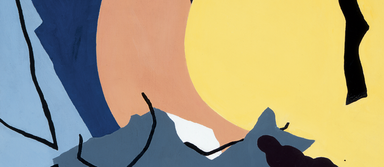Lewis’ military experiences led him to a dramatic change in style. Before World War II, he had focused on social‑realist art, working for the Works Progress Administration. His military service during the war made him realize the hypocrisy of the U.S. fight “against an enemy whose master race ideology was echoed at home by the fact of a segregated armed forces.” Returning home, he no longer believed in the power of representational art to effect change and turned to abstraction, as with this early abstract work from the year the war ended.